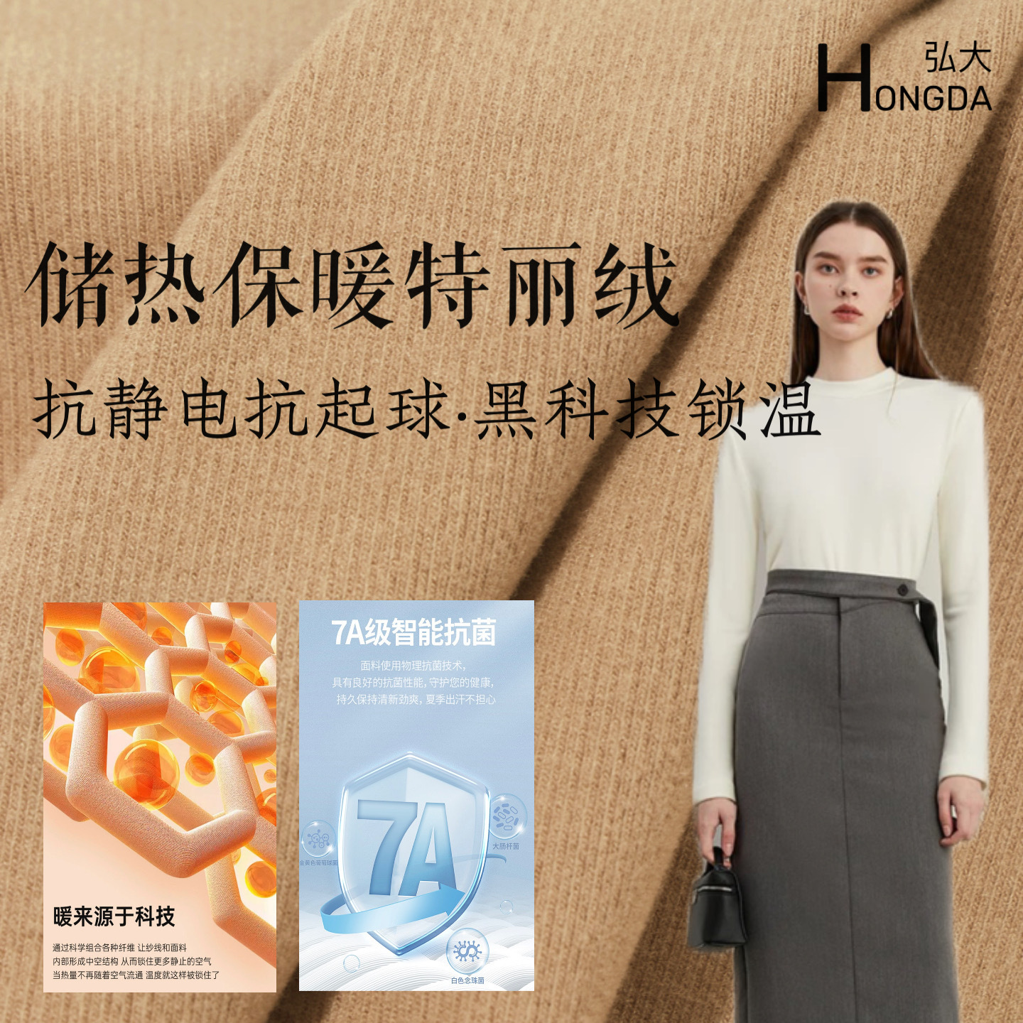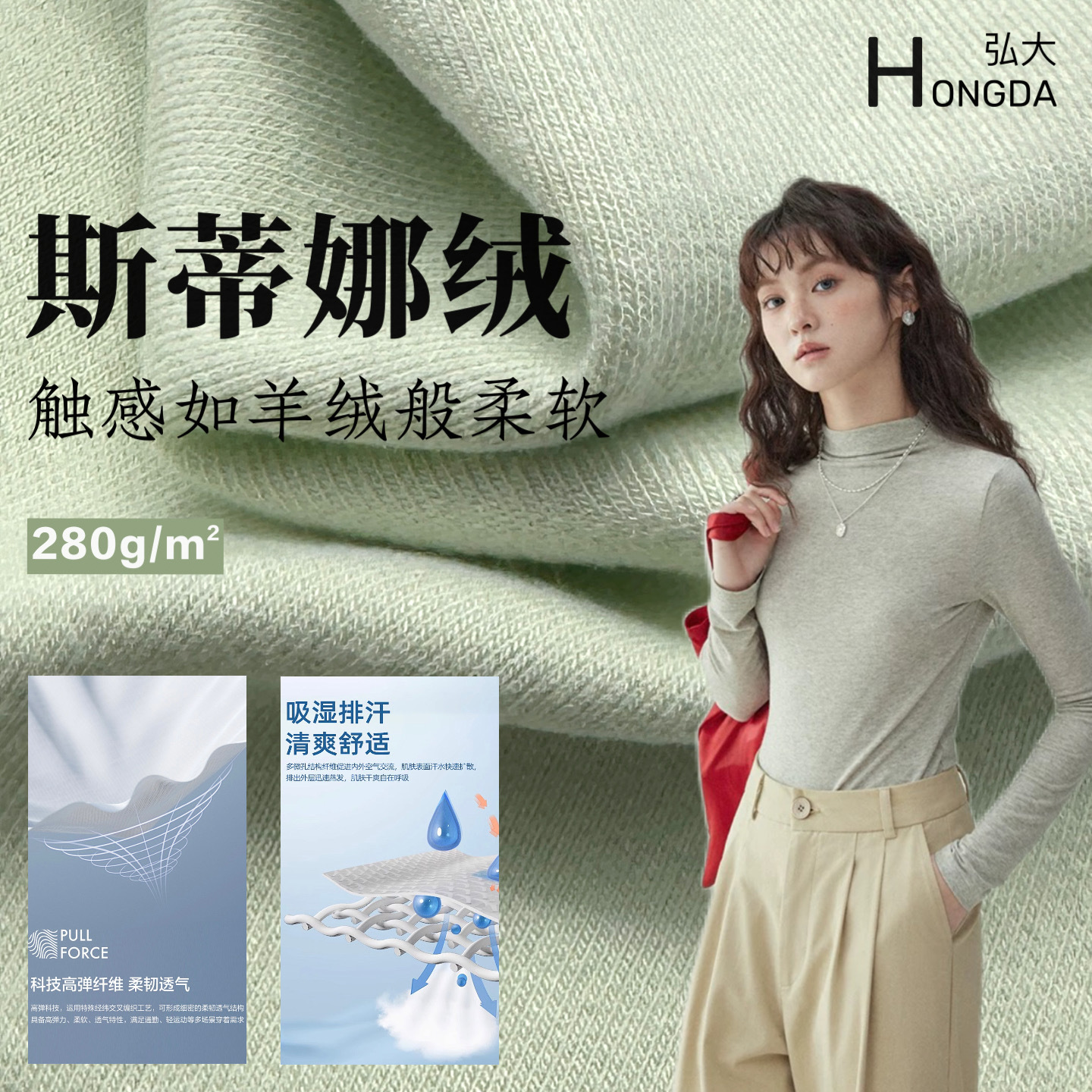 280g依翡丝膨体抗菌德绒面料秋冬保暖打底衫家居服双面绒布料