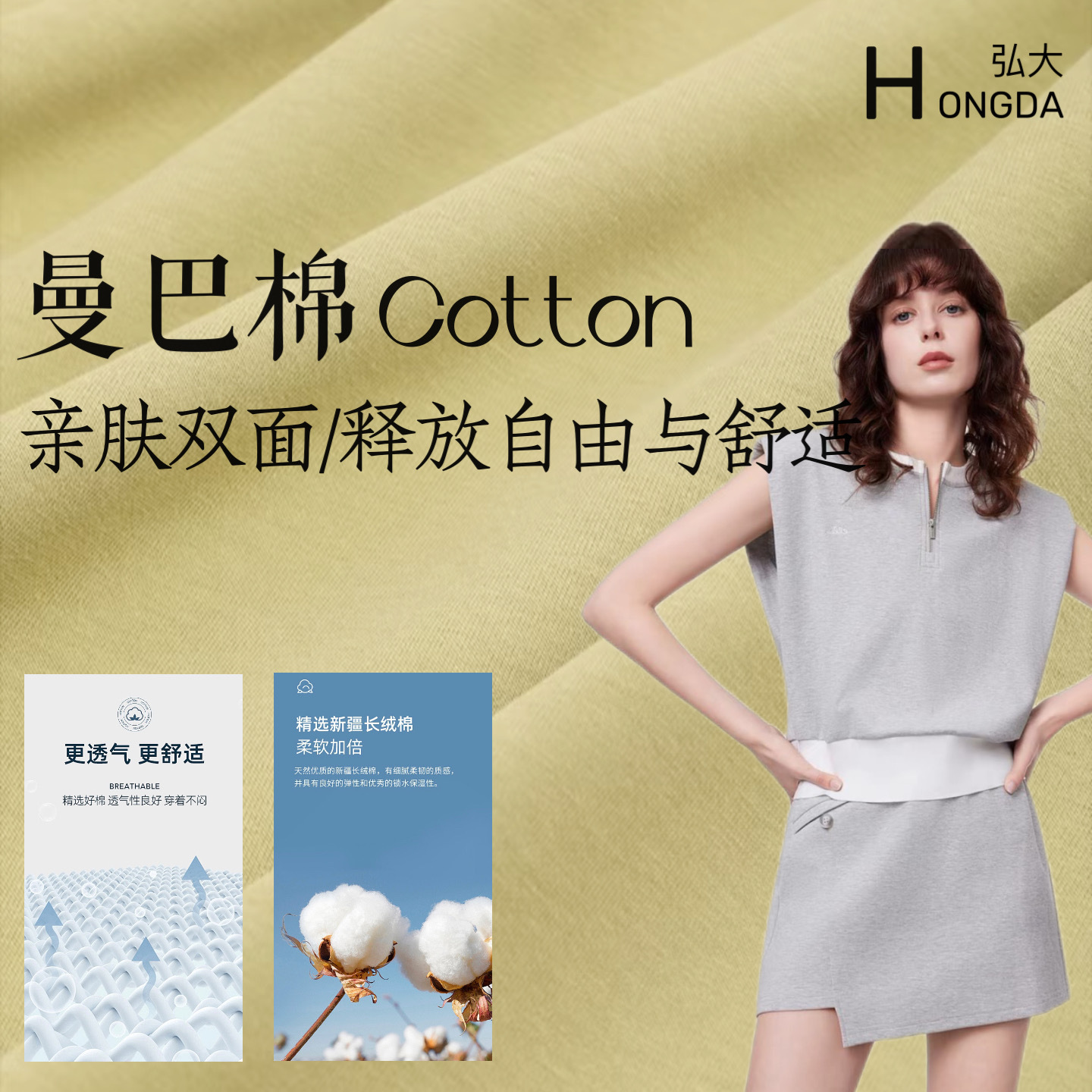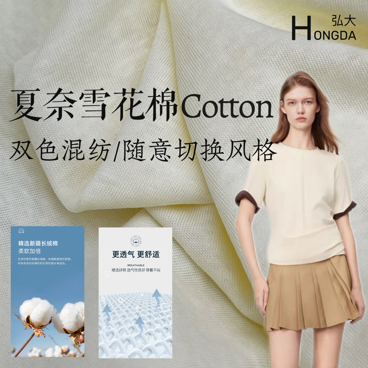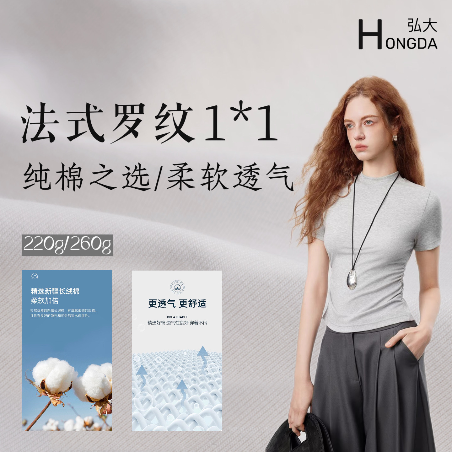 60支液氨双面布面料 165克丝光长绒棉 轻奢短袖上衣 持久如新抗皱