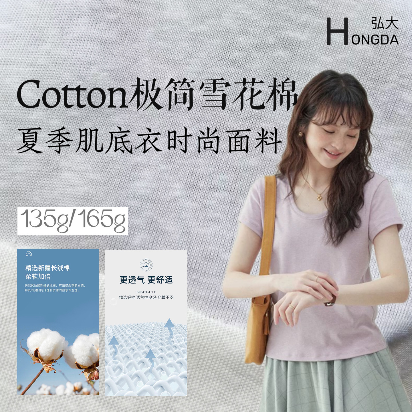 145g莱赛尔雪花棉 天丝棉竹节汗布 春夏防晒透气打底T恤面料