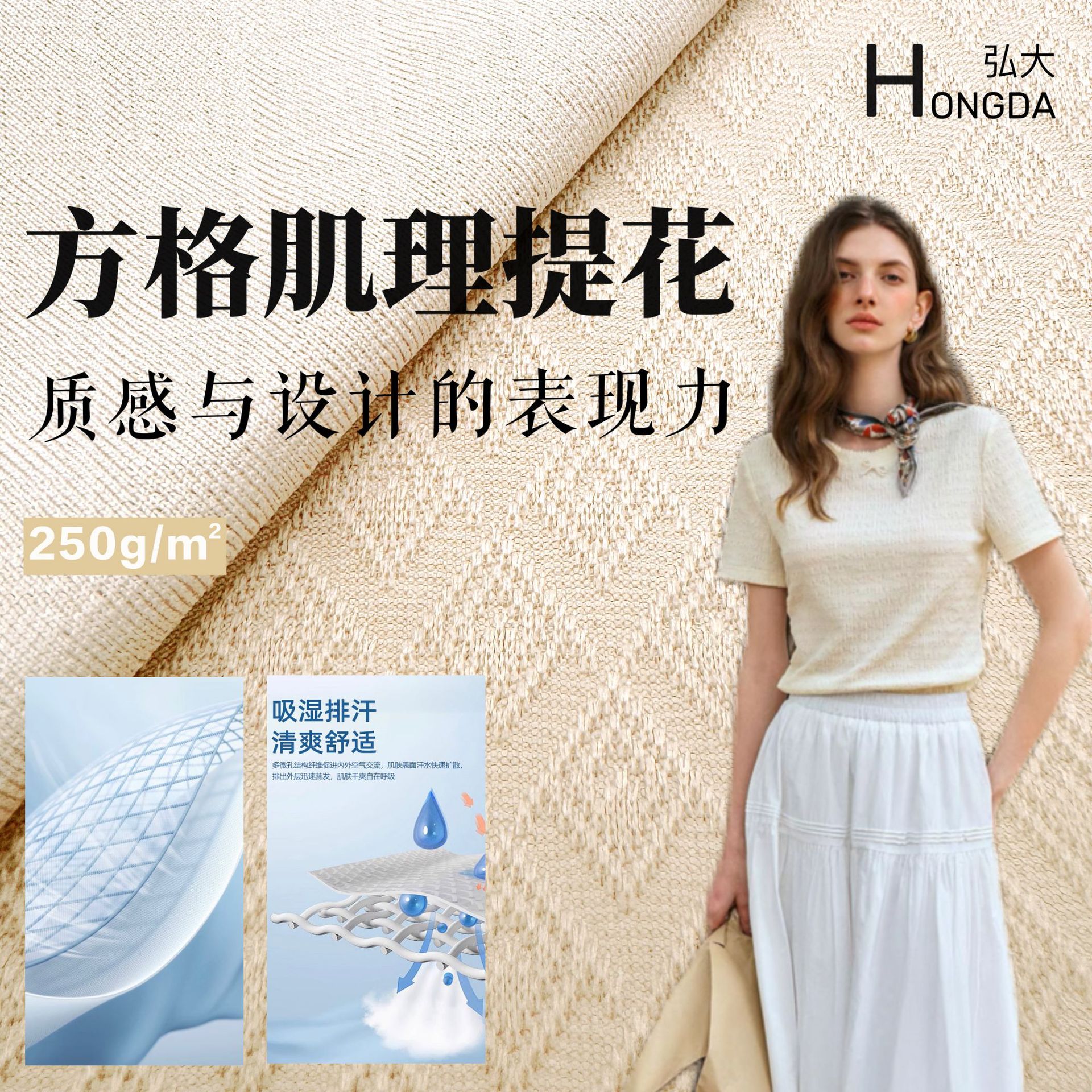 涤氨肌理感方格提花华夫格 T恤polo衫方格针织布肌理感仿棉华夫格
