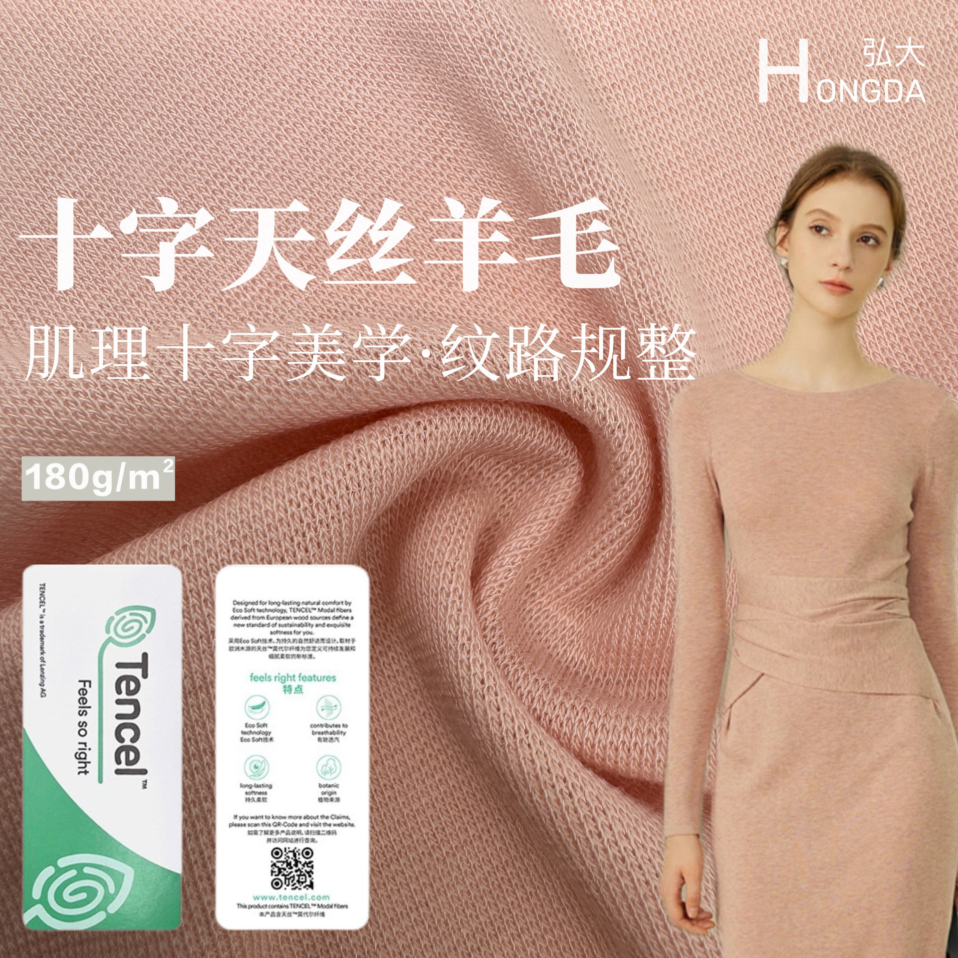 兰精天丝十字罗纹面料180G美利奴羊毛透气打底针织轻量化秋冬面料