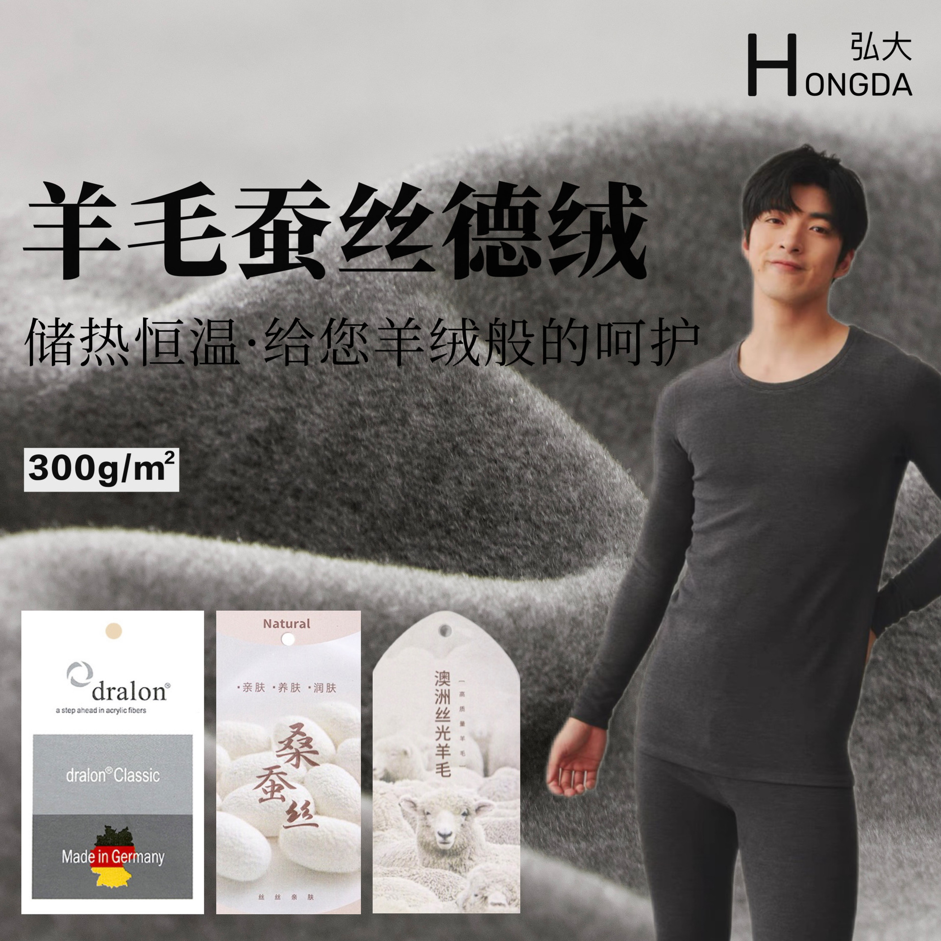 蚕丝羊毛300克双面德绒 发热布秋冬内衣家居服套装磨毛保暖绒布