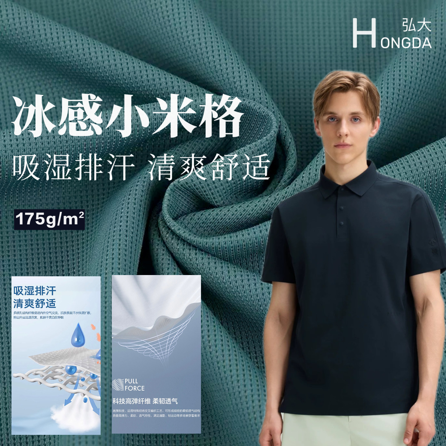 180g锦氨冰感玉米格针织面料 弹力华夫格 男装polo衫运动T恤布料