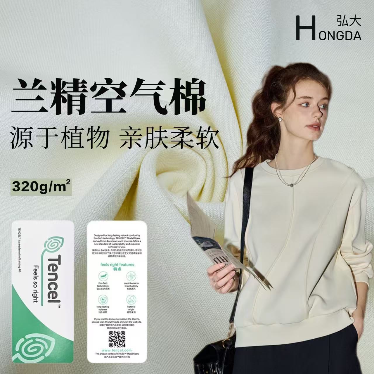 兰精莫代尔空气层布料320g莫棉肤感lulu同款保暖大卫衣外套面料