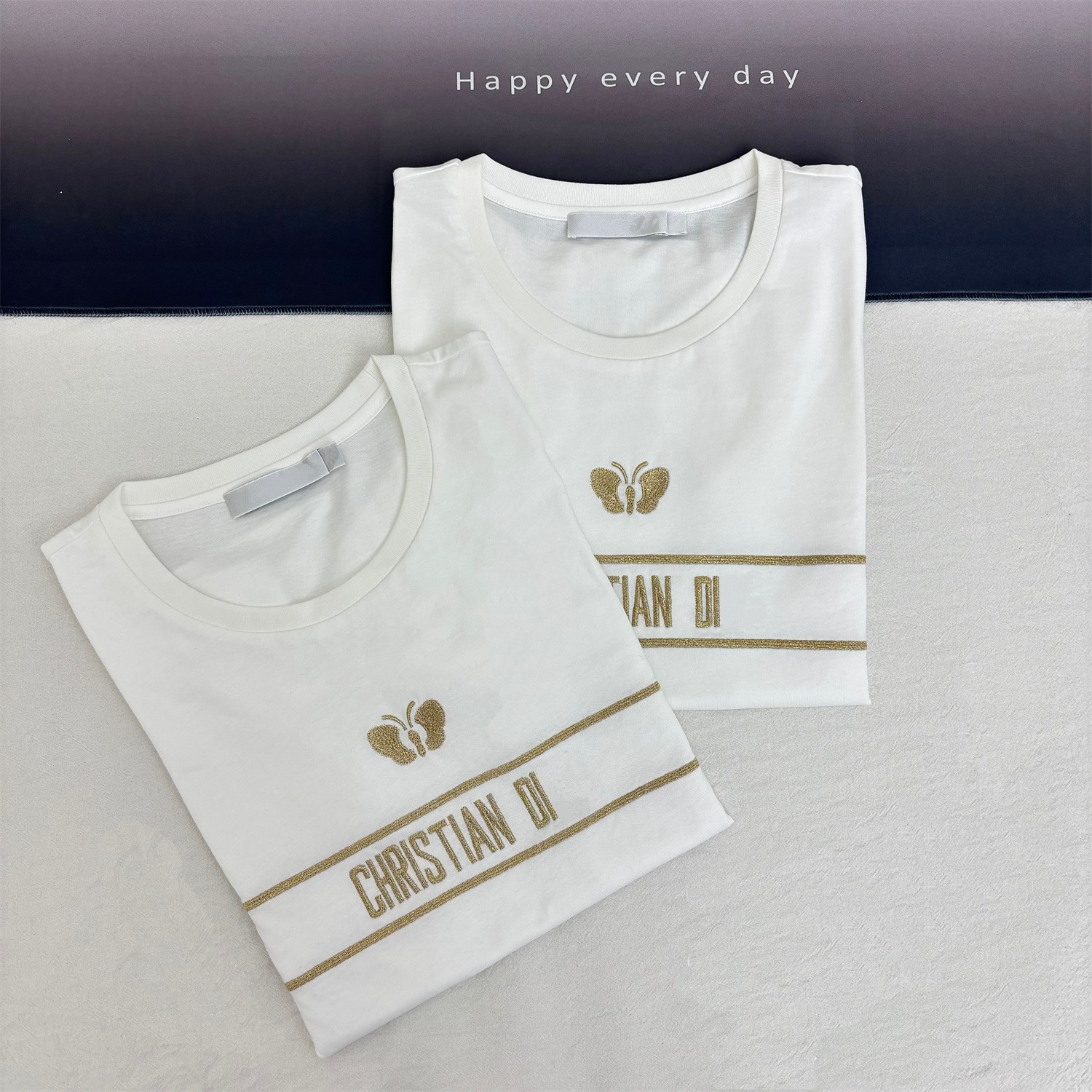 一件代发D家 高版本金丝蝴蝶刺绣高级优雅贵气圆领T恤 时尚百搭潮
