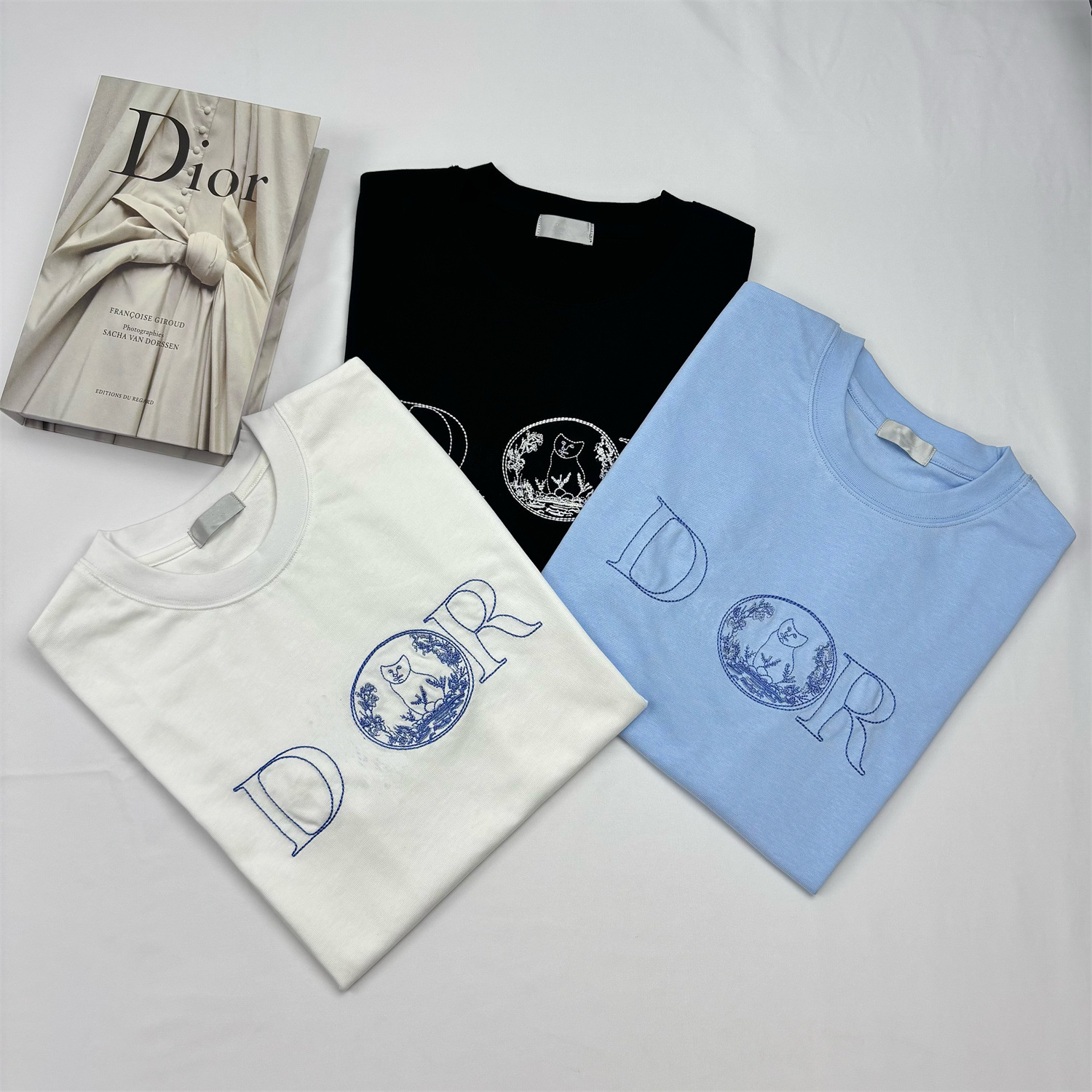 一件代发高版本D家25ss360G重磅棉字母喵星人刺绣百搭T桖男女同款