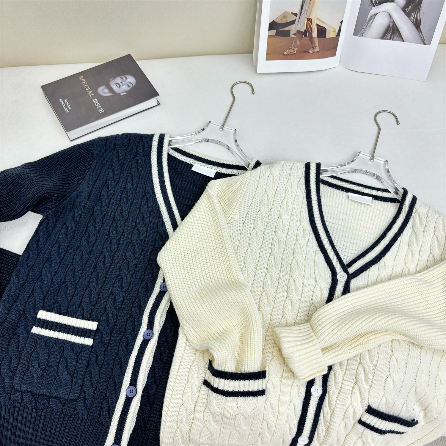 南油高版本2024年秋冬新款小香风大翻领双麻花双拉链针织开衫外套