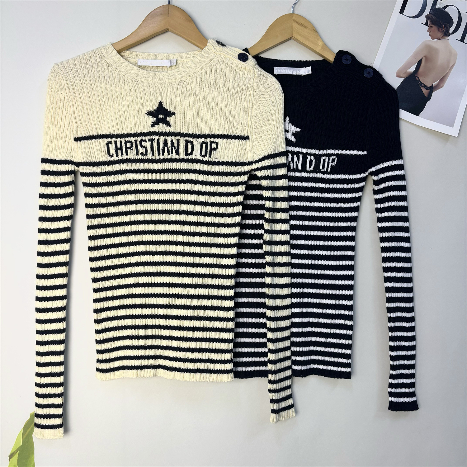 一件代发D家高品质针织长袖24秋冬五角星幸运星字母斜肩扣经典款
