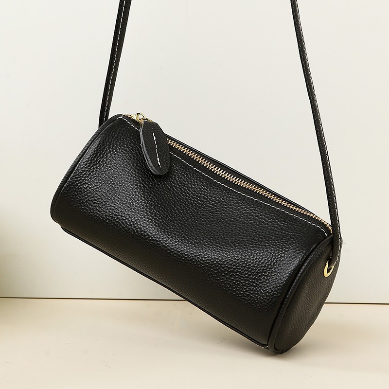 头层牛皮包包女简约手提水桶包外贸真皮女包轻奢质感单肩斜挎包