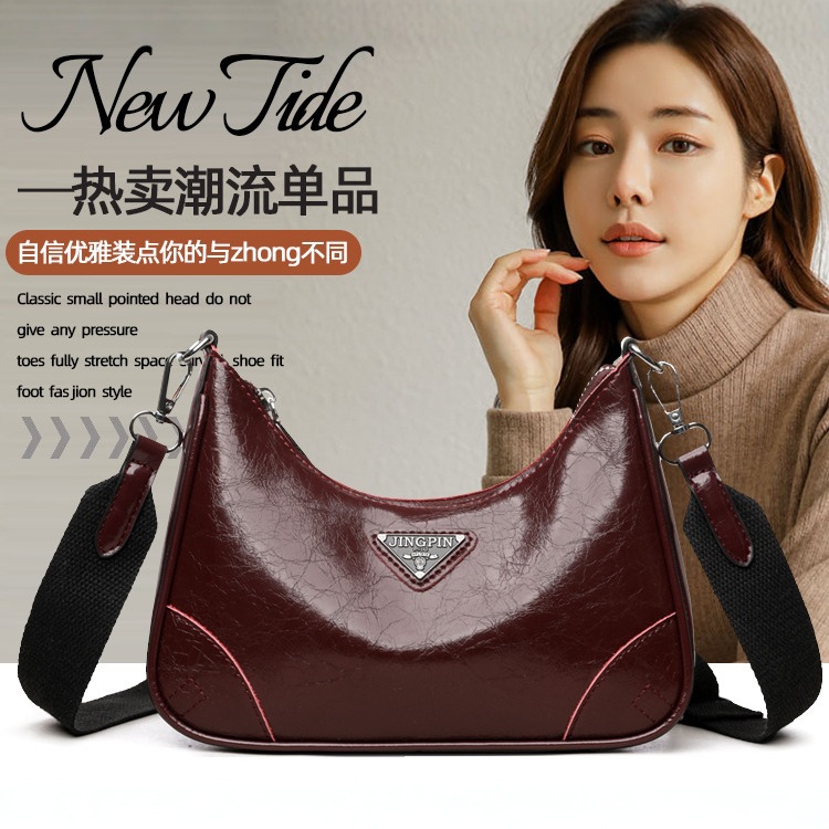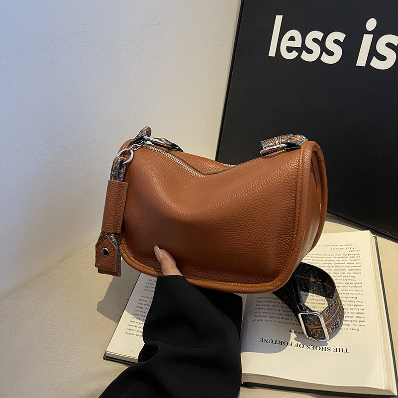 高颜值百搭2024新款时尚潮流复古柔软牛角饺子包小众单肩斜挎包包