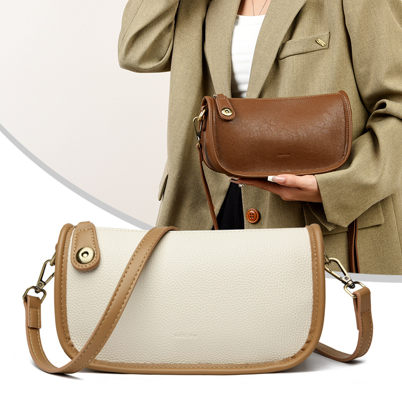 新款流行真皮女生饺子包简约线条时尚单肩斜挎包复古撞色潮流包包