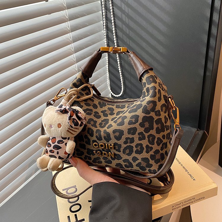 小众流行豹纹包包女2024新款秋冬季百搭斜跨包时尚手提饺子包