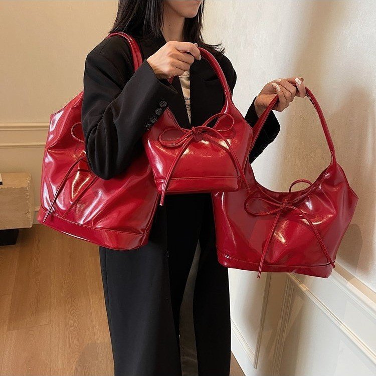 高级感波士顿苹果包潮流大荔枝纹皮优女包实用手提枕头包单肩斜跨