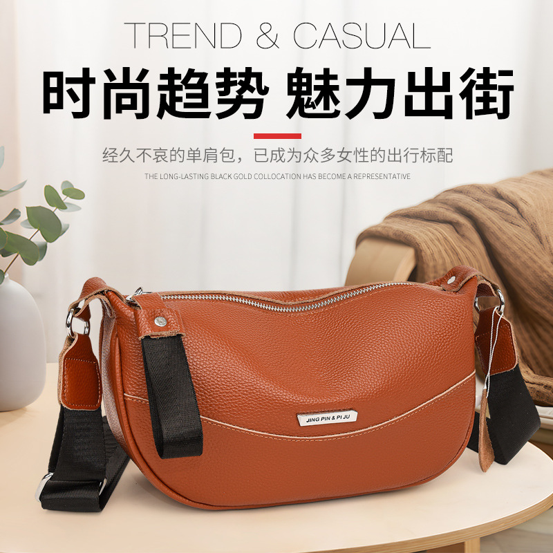 真皮女包月下月牙款百搭饺子包荔枝纹质感皮包大容量单肩斜挎包潮