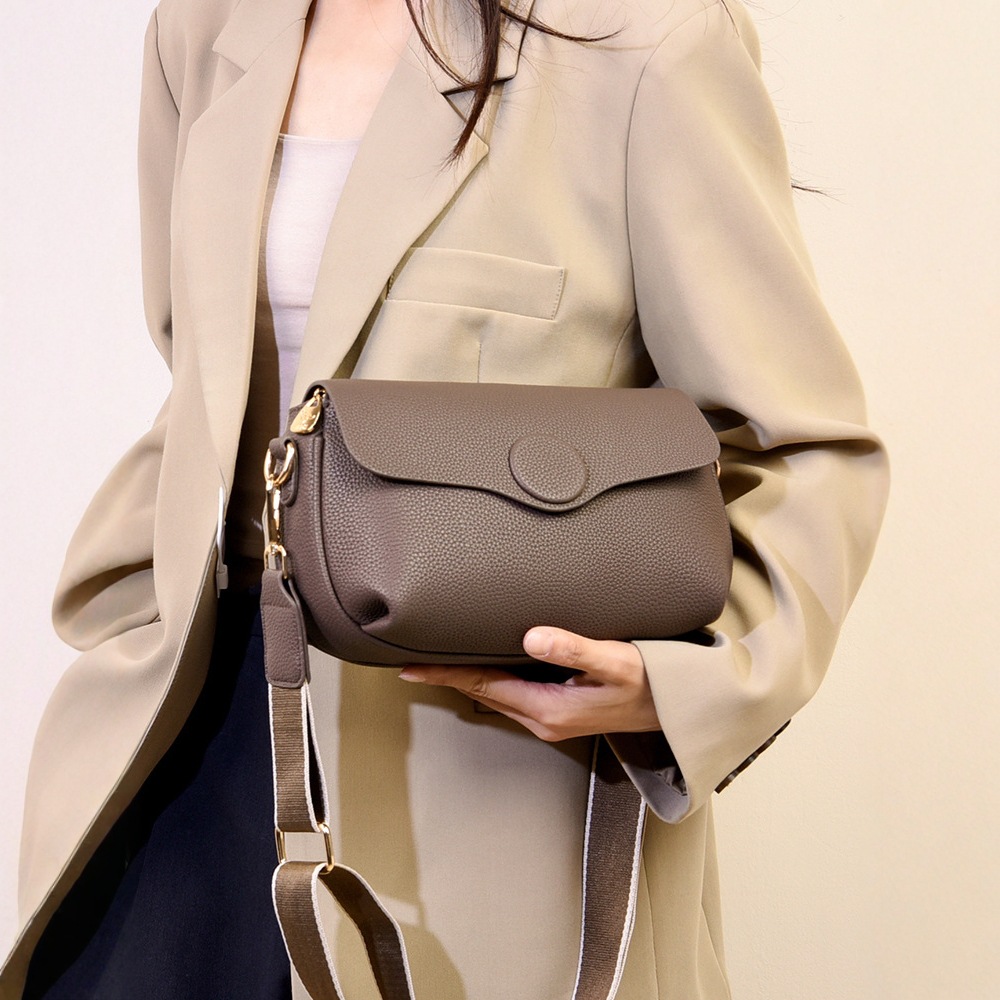 包包大纽扣牛皮纹小方包防盗包盖式褶皱几何包真皮双肩带斜跨女包