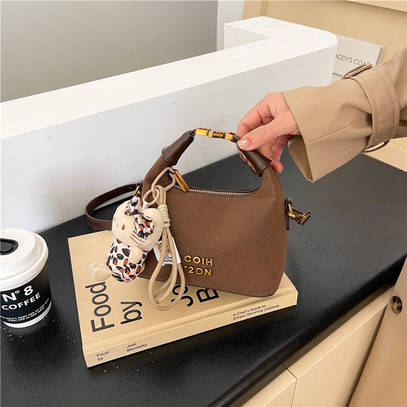 今年流行复古磨砂包包女2025新款小众设计饺子包百搭高级感斜挎包