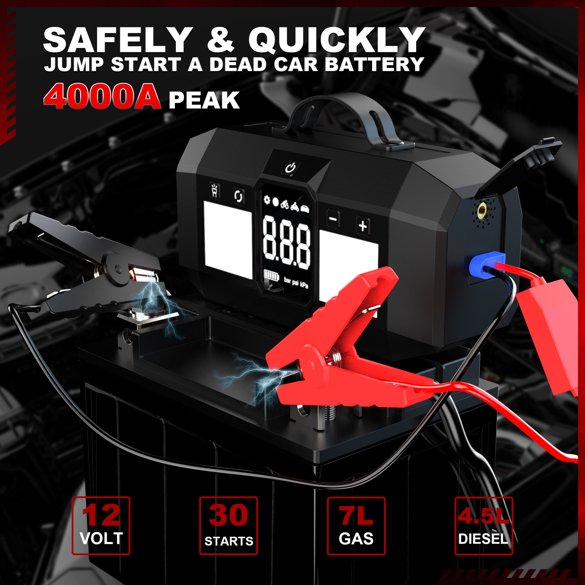 工厂便携式车载汽车多功能打气泵应急智能数显充电宝LED灯车用