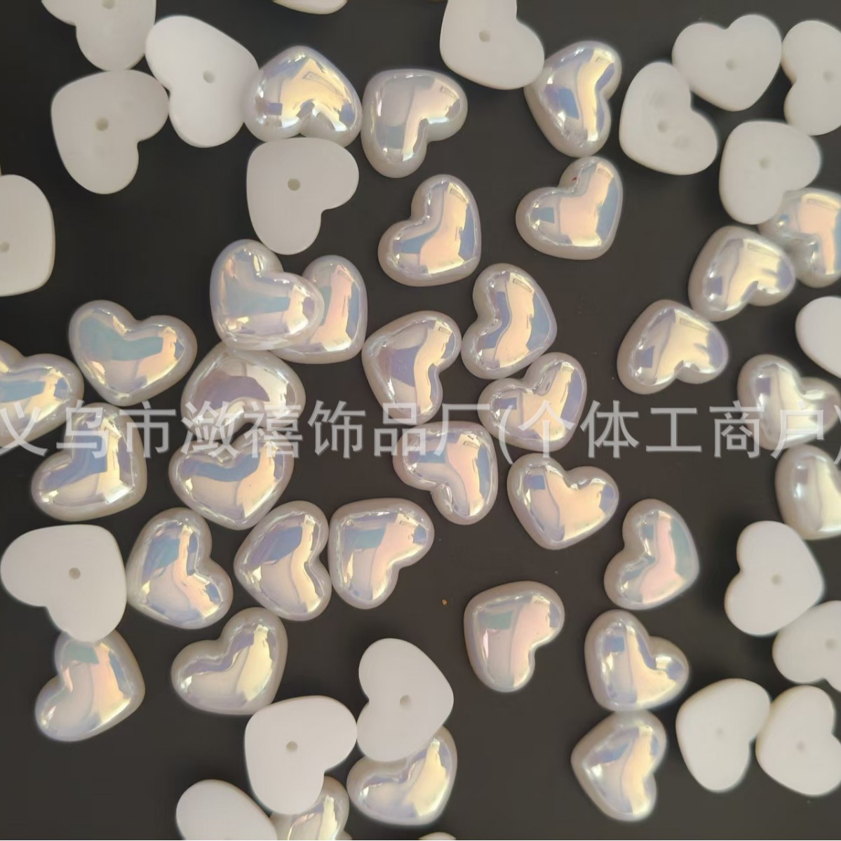 ABS仿珍珠半面桃心爱心贴片彩色平底心形珠diy手机美容贴钻散珠子