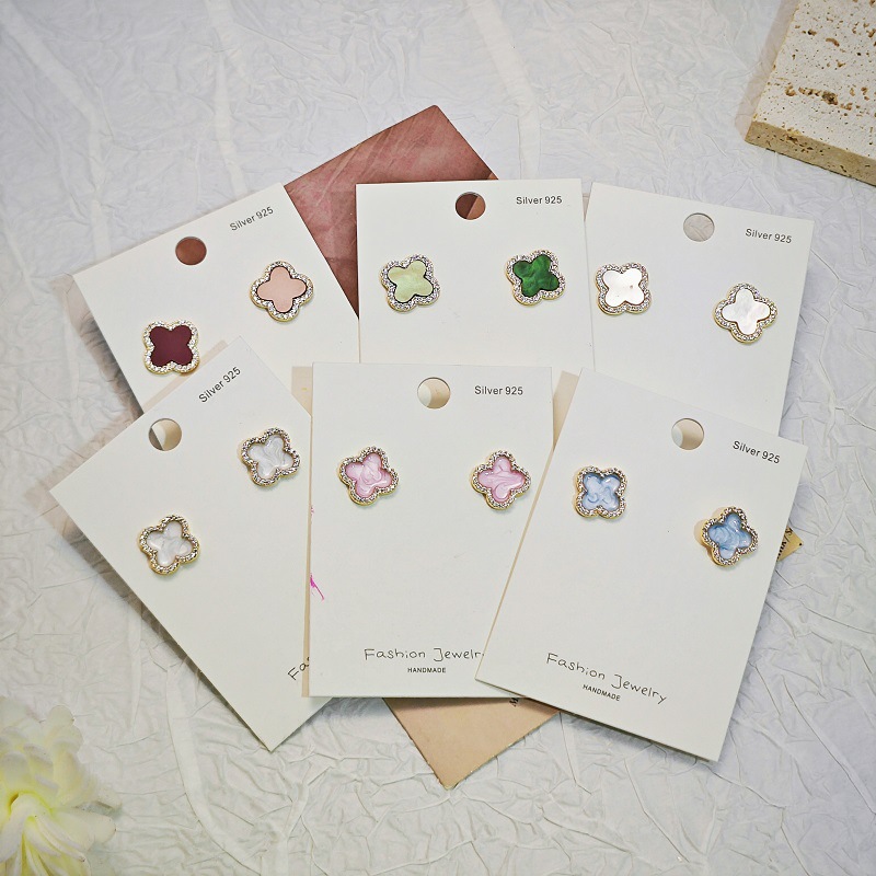 铜合金精致简约微镶四叶花耳钉s925银针轻奢高级感耳环精品