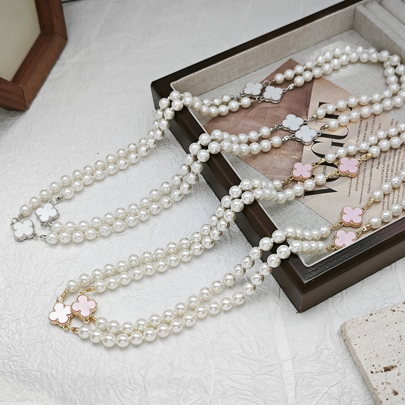 四叶草珍珠项链高级感经典秋冬长款毛衣链项链时尚百搭多层毛衣链