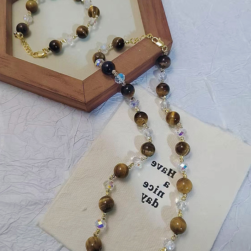 复古新款虎眼石贝珠项链手链设计感白水晶串珠珍珠百搭手串项链