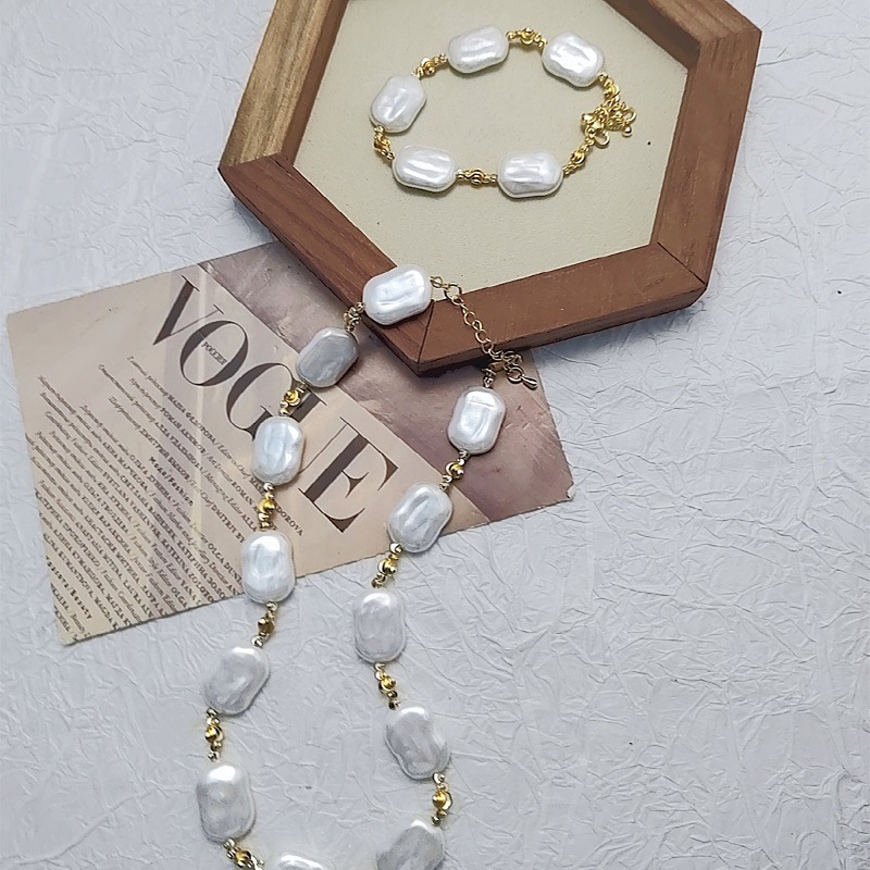 巴洛克异形方块珍珠贝珠项链气质时尚不规则简约隔珠手链项链套装