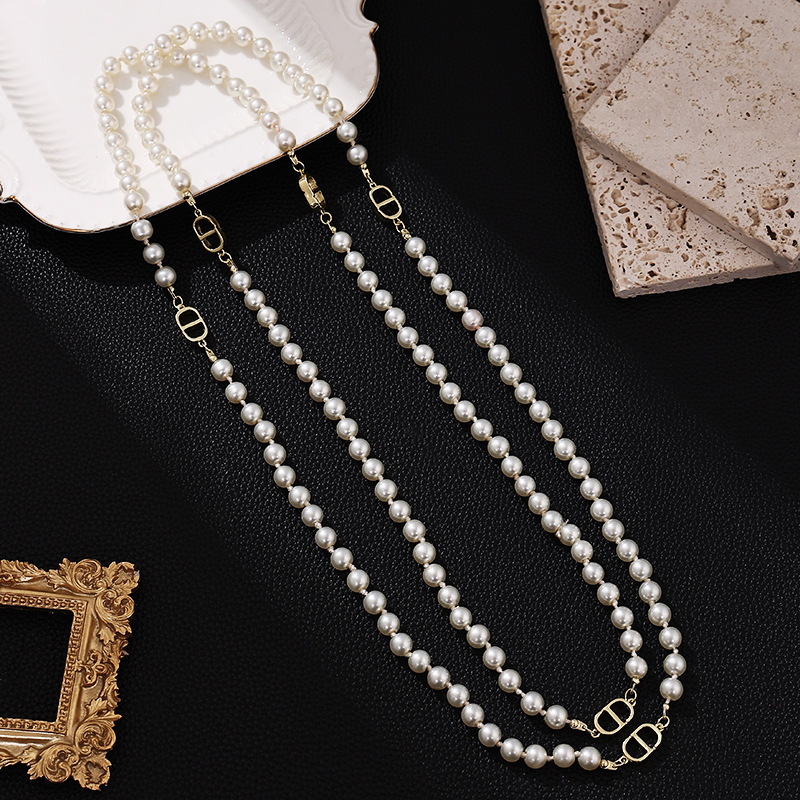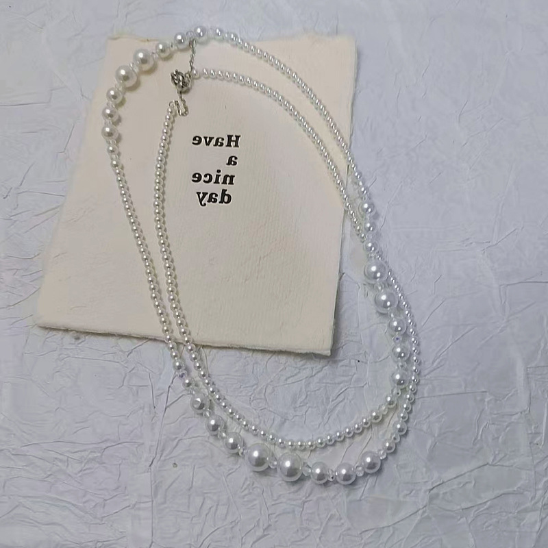 贝壳珍珠项链多层简约长款项链大小珍珠设计款铜合金配件时尚项链