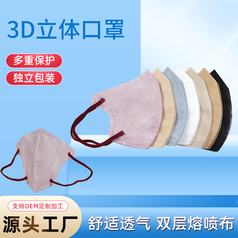 3D口罩成人一次性加宽弹力耳带薄款透气独立包装3d立体防护口罩