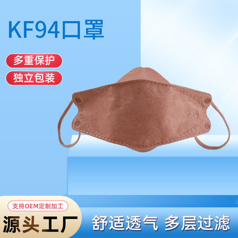 KF94口罩彩色批发柳叶型高颜值女韩鱼形防尘一次性折叠3d立体口罩