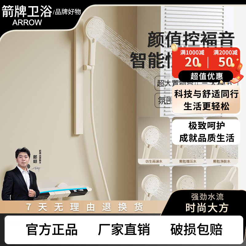 箭᷂牌全铜沐浴家用恒温淋浴花洒套装智能无线数显腰喷奶白钢琴键