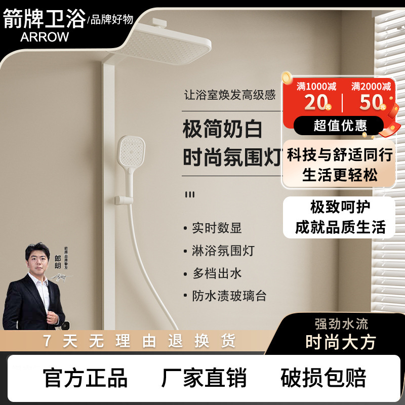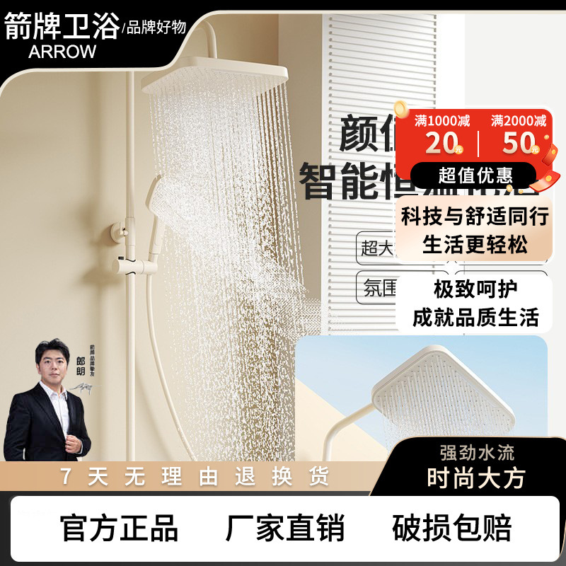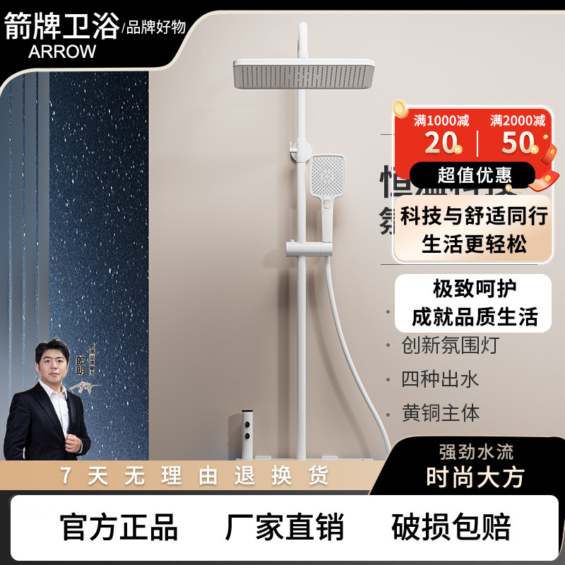 箭᷂牌奶油白恒温花洒套装浴室钢琴键增压淋浴器家用氛围灯沐浴浴