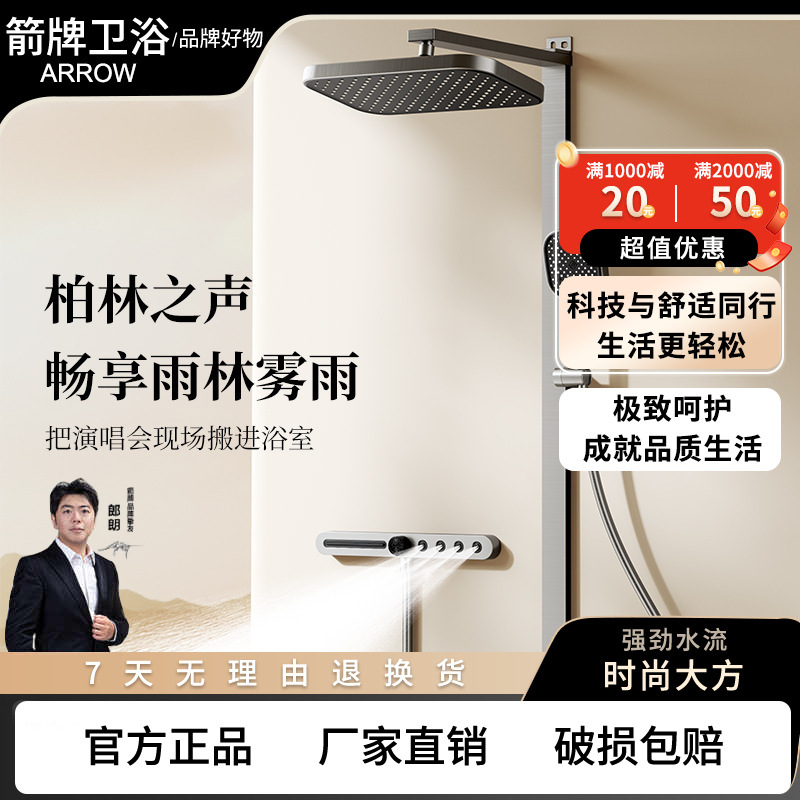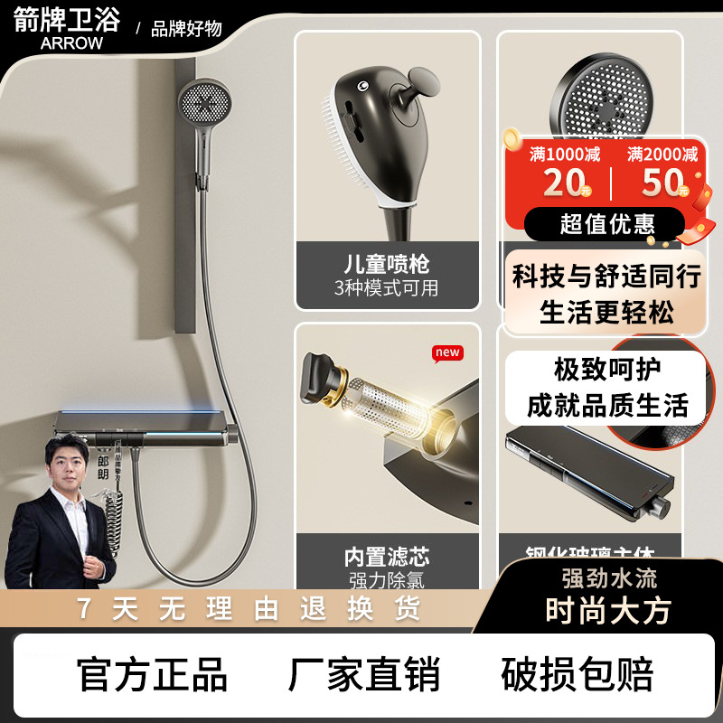 箭᷂牌智能恒温花洒套装淋浴家用钢琴款全铜恒温沐浴器升降增压喷