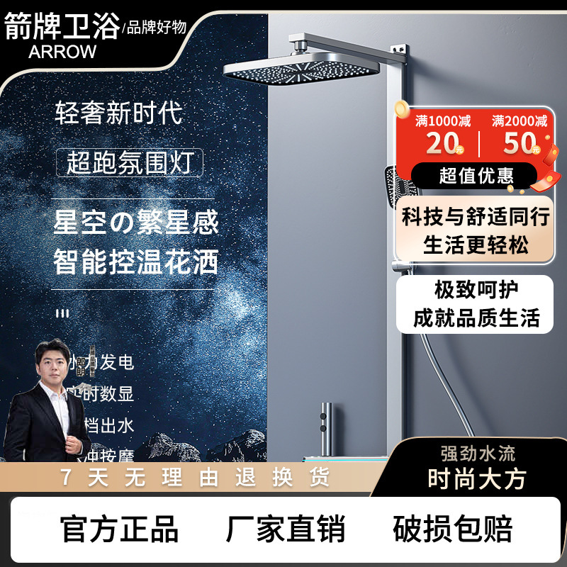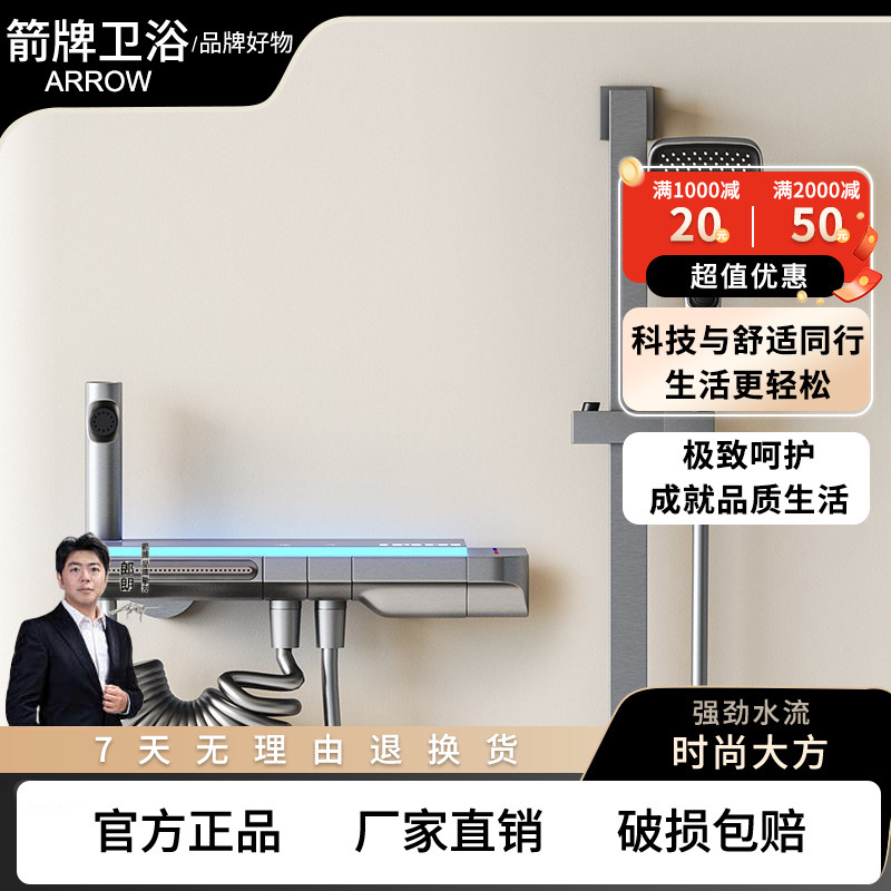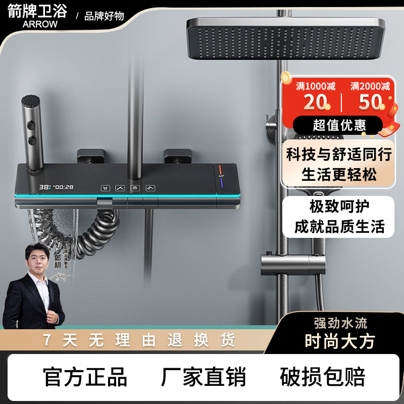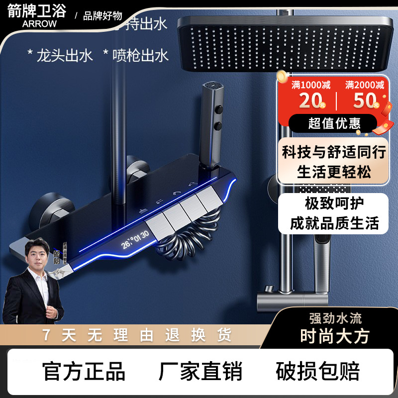 箭᷂牌家用全铜大置物沐浴套装数显氛围灯钢琴按键恒温浴室淋雨增
