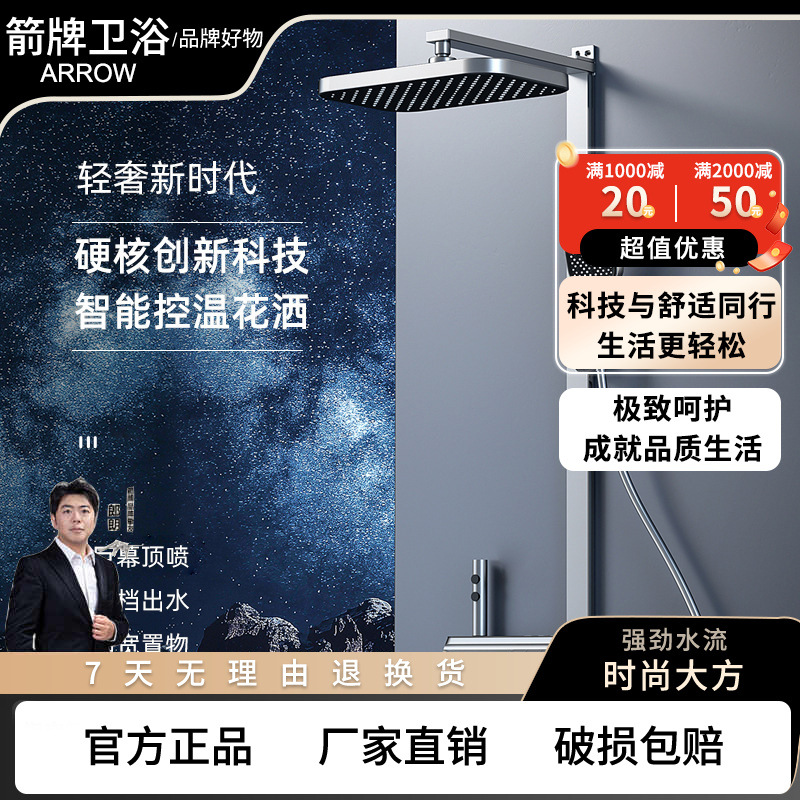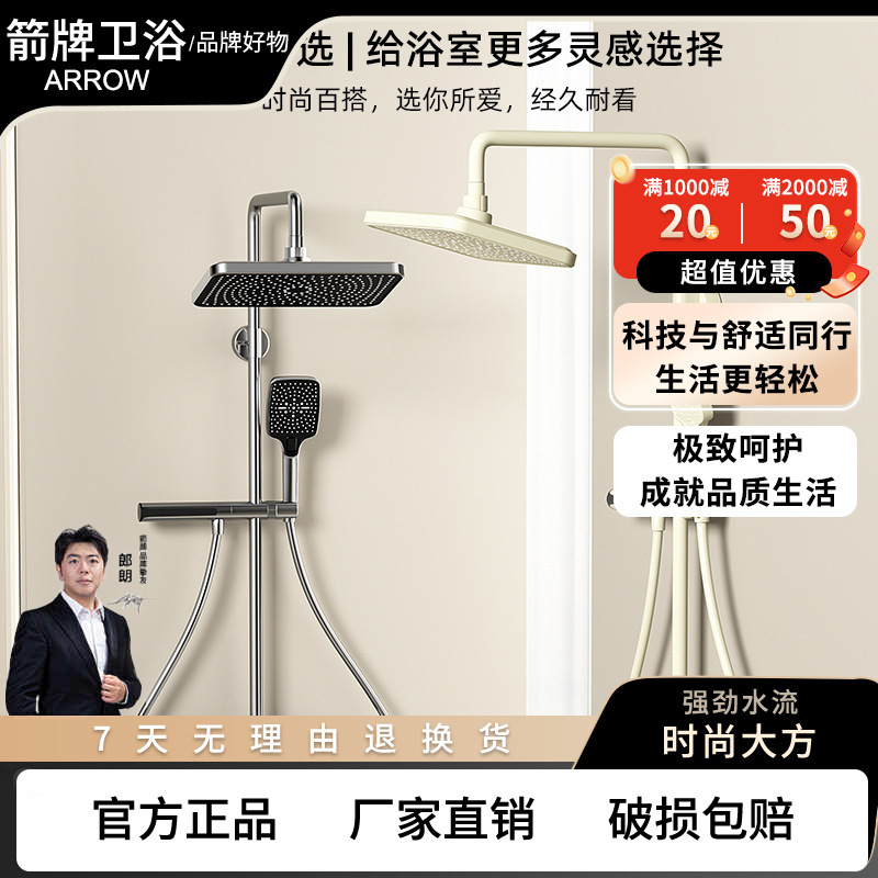 箭᷂牌淋浴恒温套装按键数显沐浴增压卫浴洗澡按键喷头顶喷浴室花