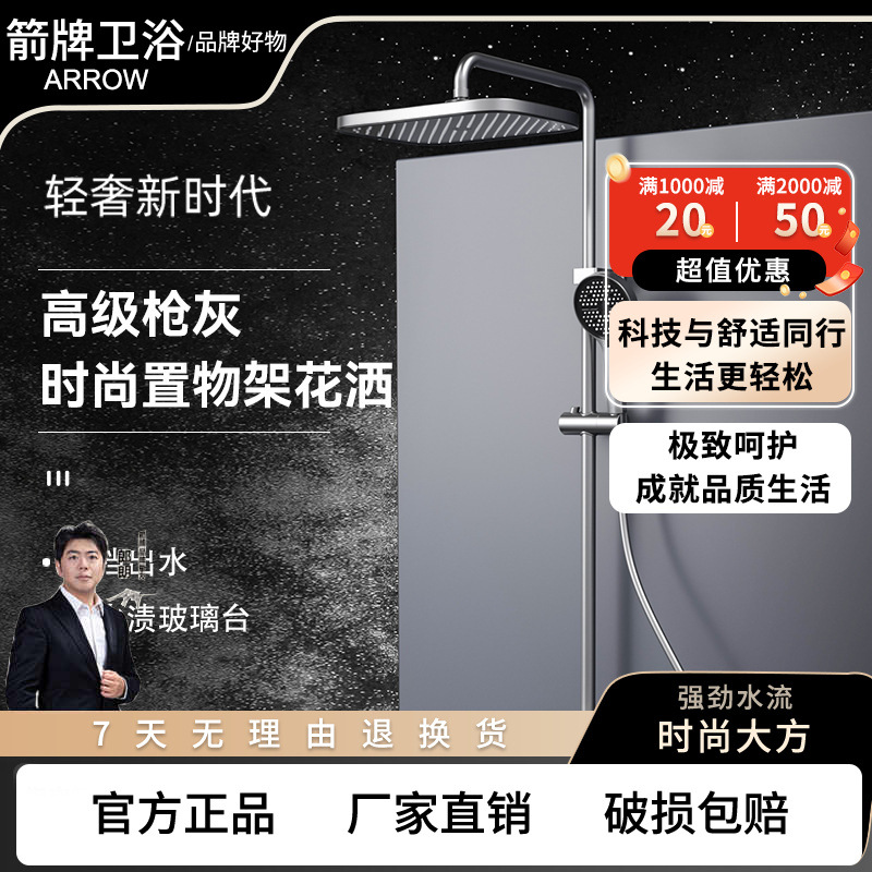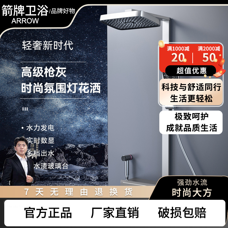 箭᷂牌钢琴按键智能数显大置物枪灰色氛围灯靠墙带腰喷淋浴增压花
