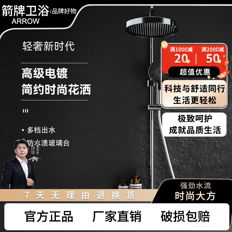 箭᷂牌淋浴花洒套装增压大出水淋雨喷头家用浴室卫浴全铜龙头花晒