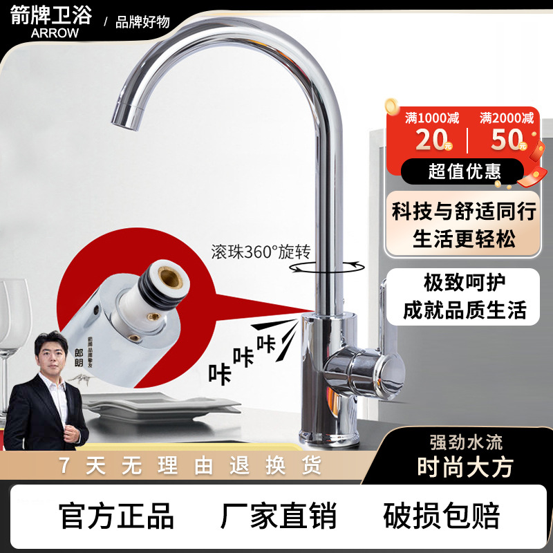 箭᷂牌滚珠厨房可旋转冷热水龙头全铜单冷洗菜盆洗碗池不锈钢水槽