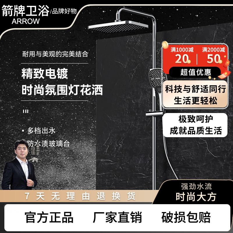 箭᷂牌正品方管恒温淋沐浴花洒套装纯全铜增压顶喷洗澡贴墙氛围灯