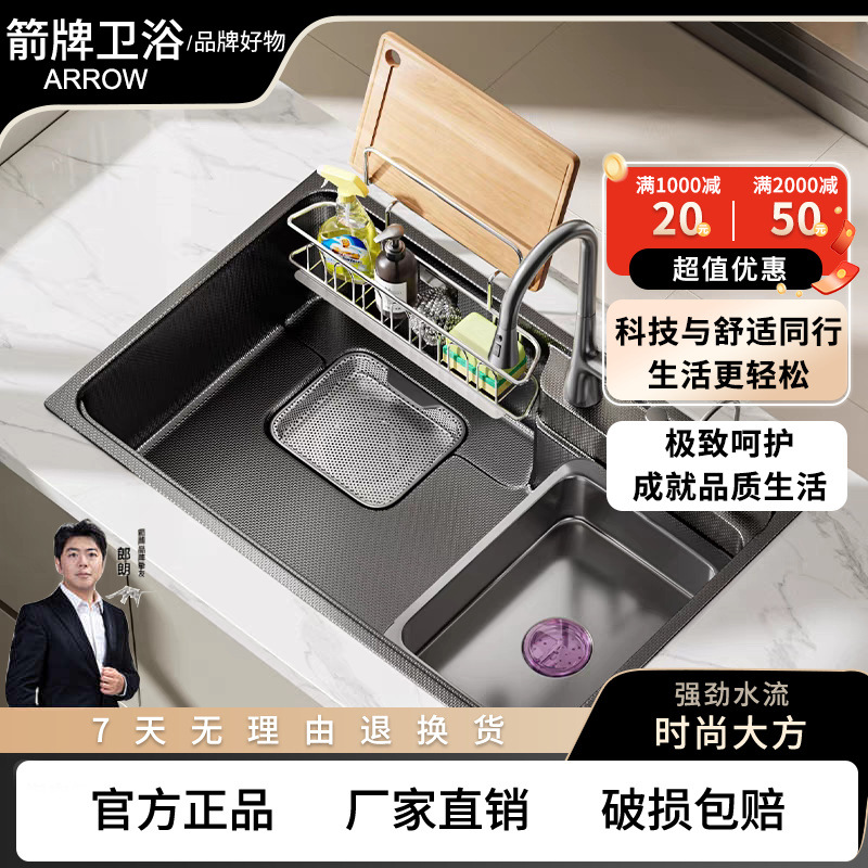 箭᷂牌厨房水槽洗菜盆大单槽不锈钢304洗碗淘菜池台中上下纳米手