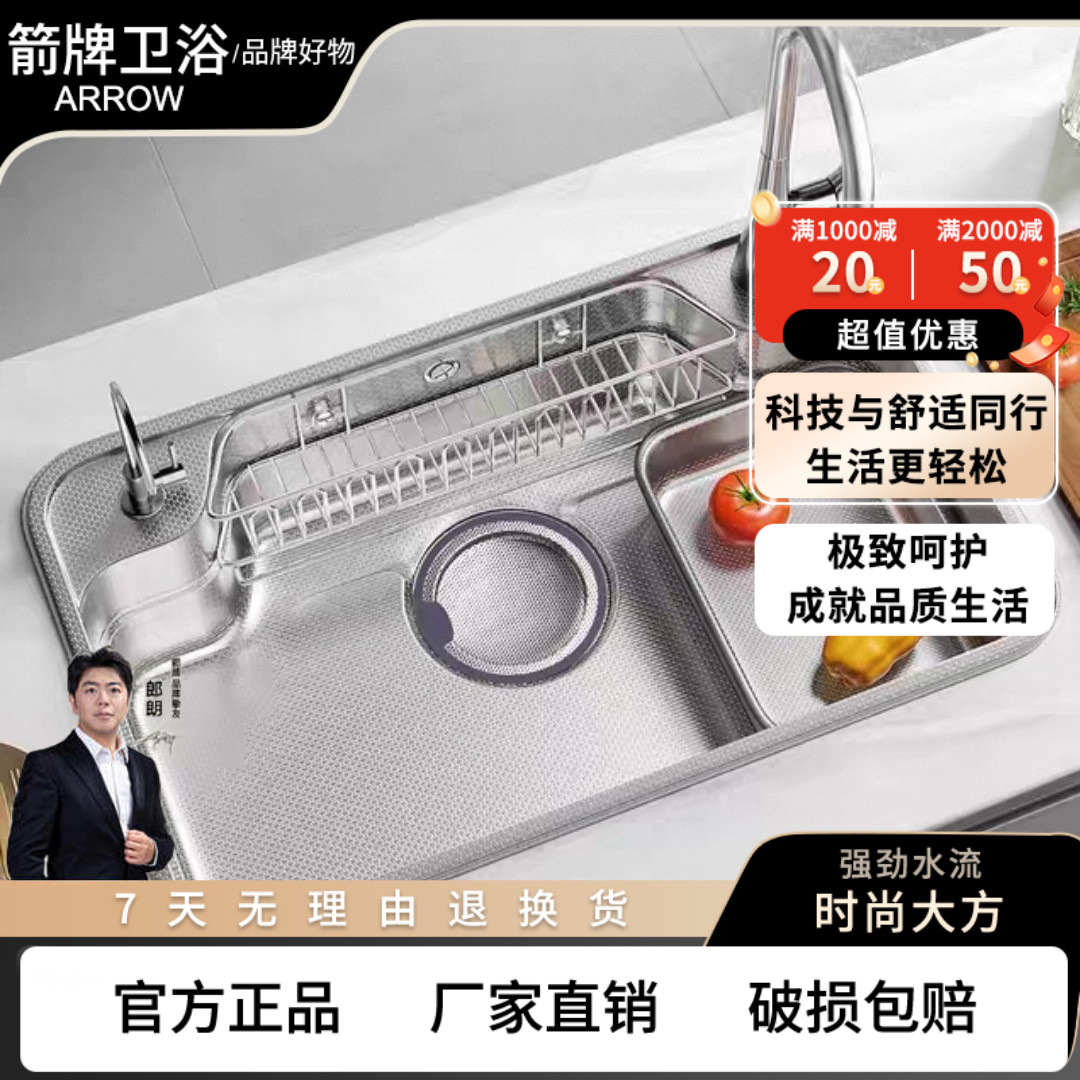 箭᷂牌洗菜盆水槽大单槽304不锈钢厨房家用洗碗菜池台上中下盆纳
