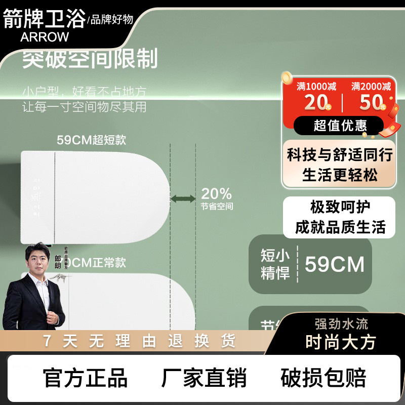 箭᷂牌正品智能马桶坐便器全自动一体式家用小户型无水压限制即热
