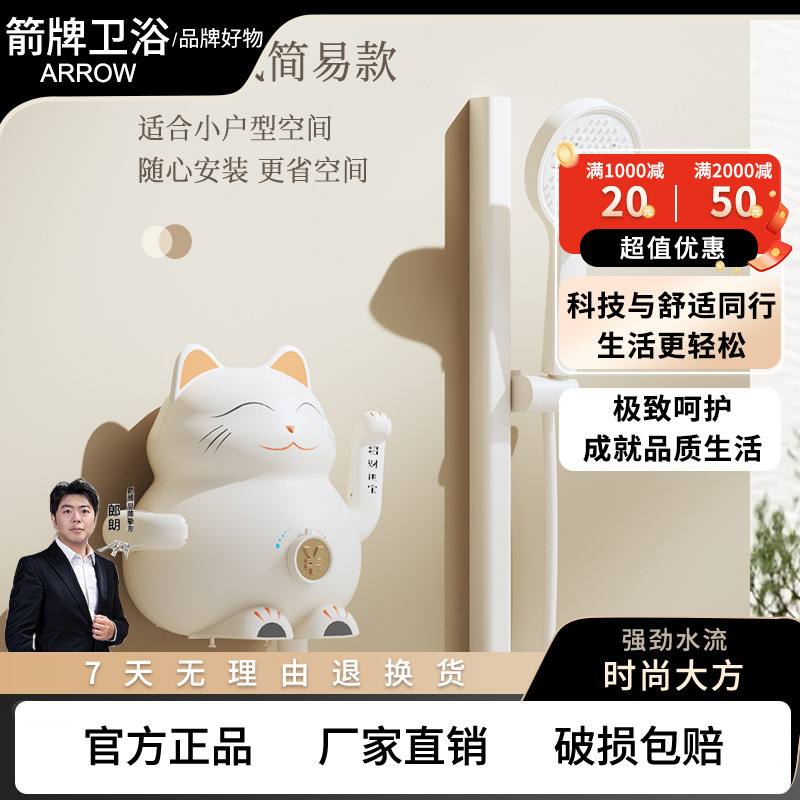 箭᷂牌新款花洒铜淋浴套装招财猫冷热双控增压喷头儿童卡通个性创