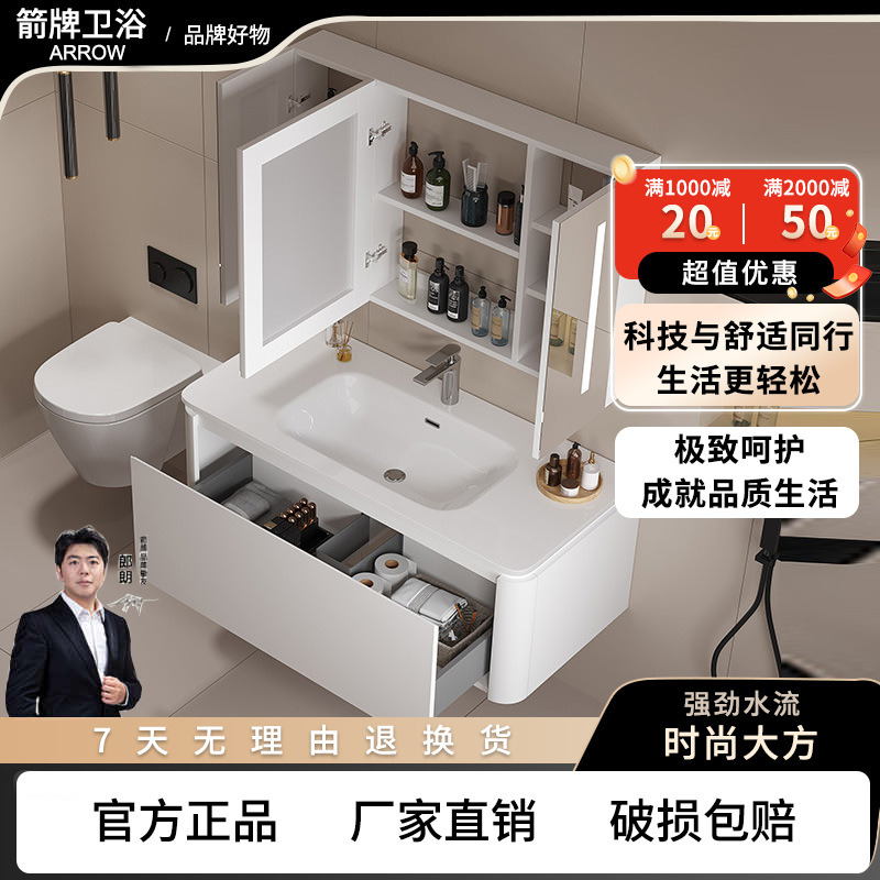 箭᷂牌现代家用浴室柜组合卫生间洗手盆柜智能除雾镜柜洗漱盆陶瓷