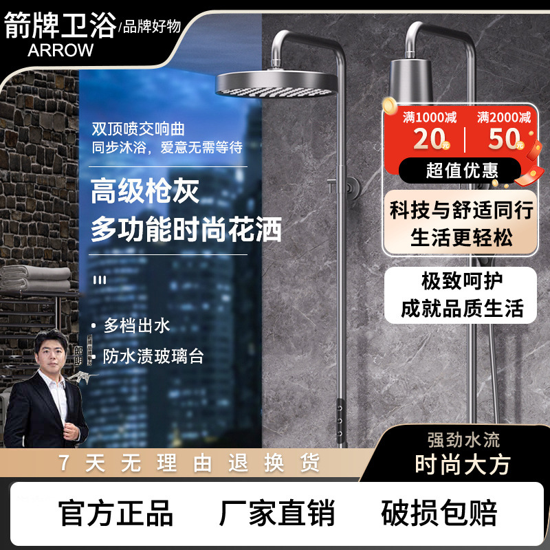 箭᷂牌新款酒店瀑布淋雨双顶喷四功能增压花洒套装家用腰喷卫生间