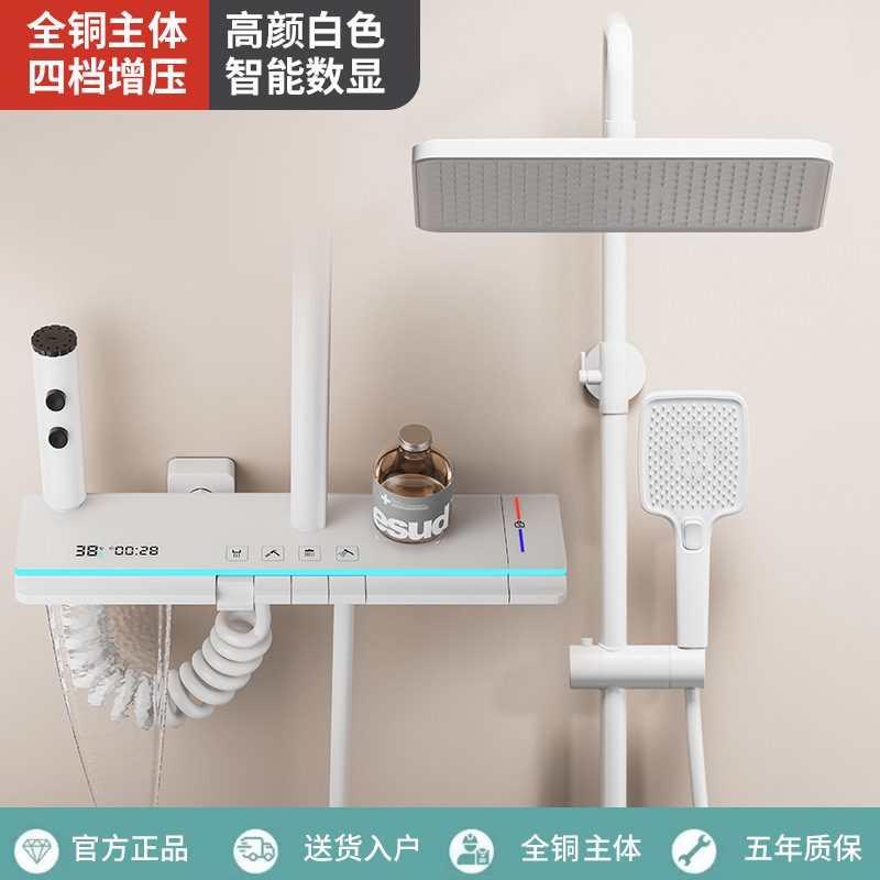 箭᷂牌奶油白淋浴花洒套装家用全铜数显套装智能恒温增压浴冷热沐