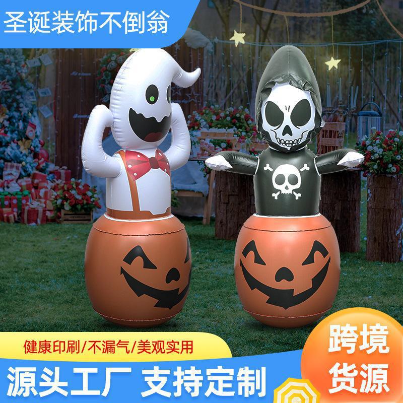 跨境流行万圣节饰景充气装饰南瓜人精灵不倒翁充气玩具