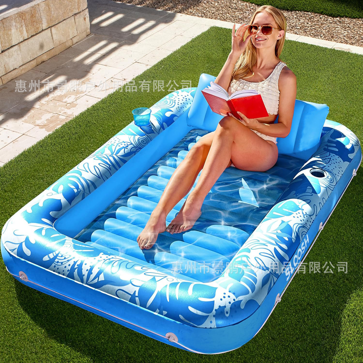 跨境户外戏水运动日光浴水上浮排pvc加厚靠背带杯座双人充气浮床