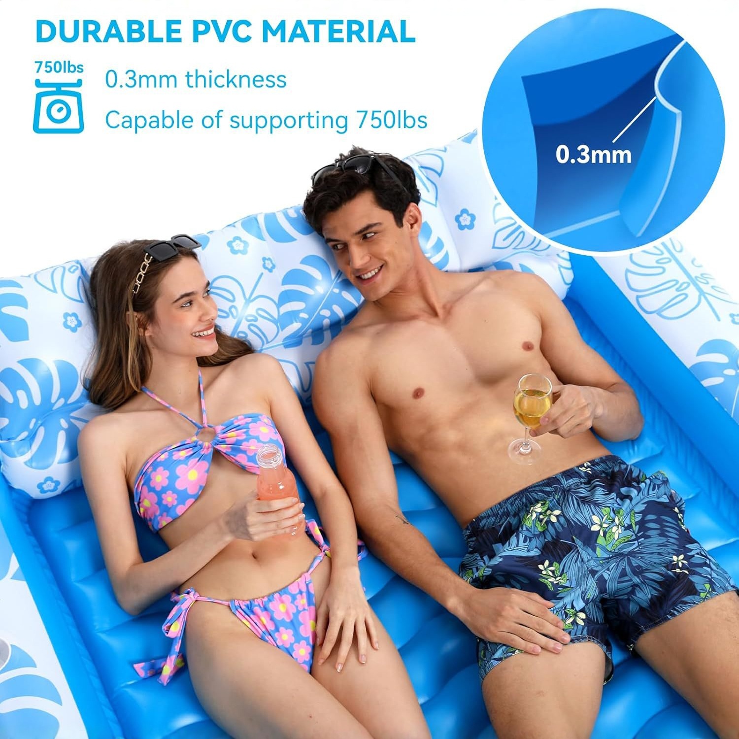 2025跨境新品环保PVC水上充气床漂浮浮床户外便携杯托棋牌桌