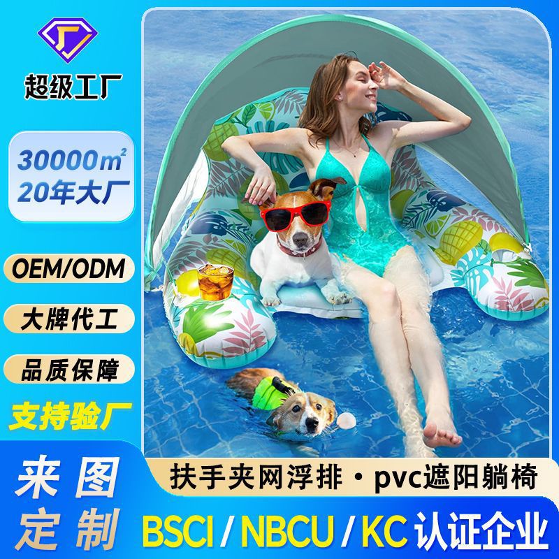 厂家充气漂浮椅泳池水上沙发躺椅带遮阳蓬浮床网水上浮椅浮排
