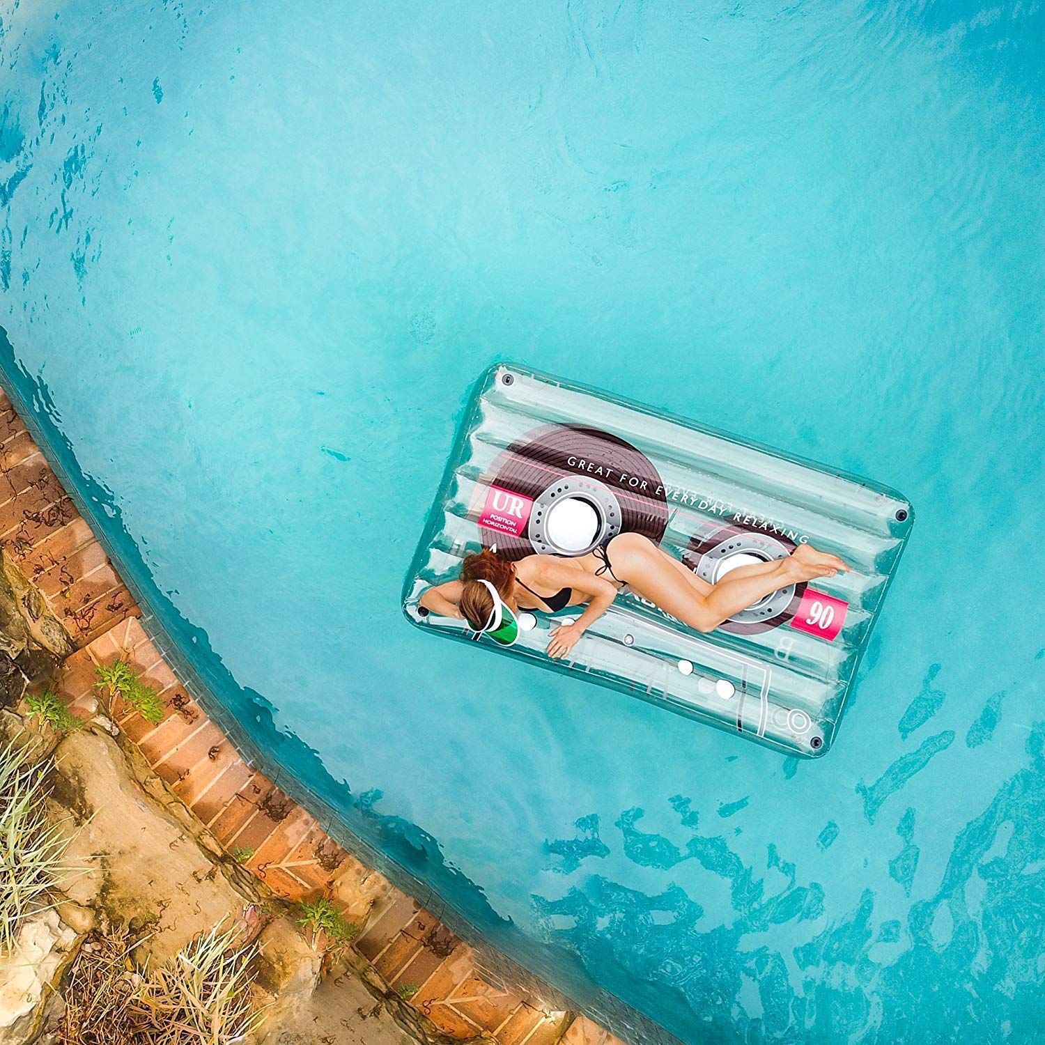 水上用品工厂创意充气透明磁带浮排圆形长方形录音带浮床充气式
